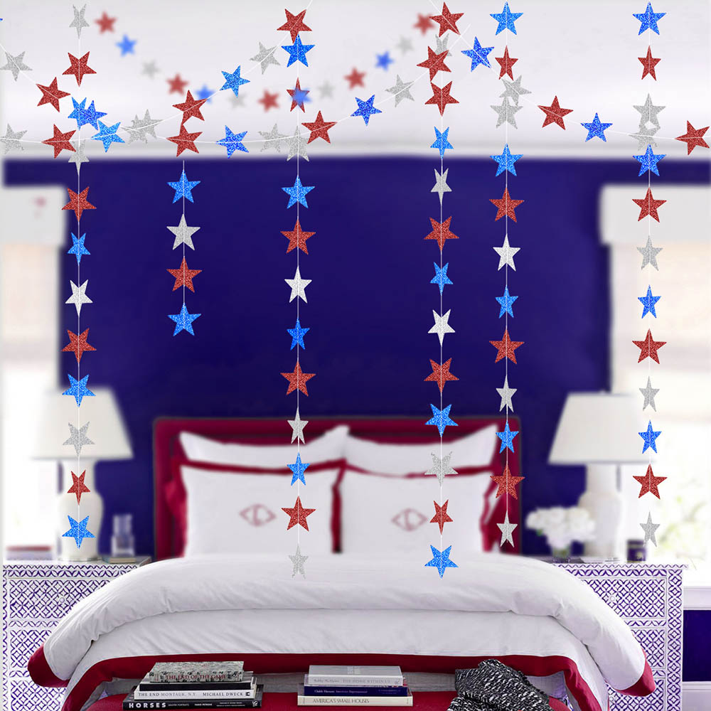 Гирлянда "Звезды" блеск/металлик 7 см х 4 м, триколор