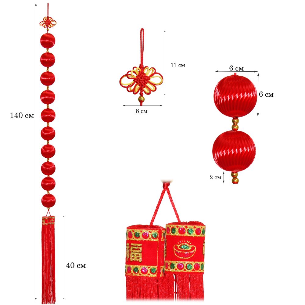 Китайская подвеска шары красные 6х140см