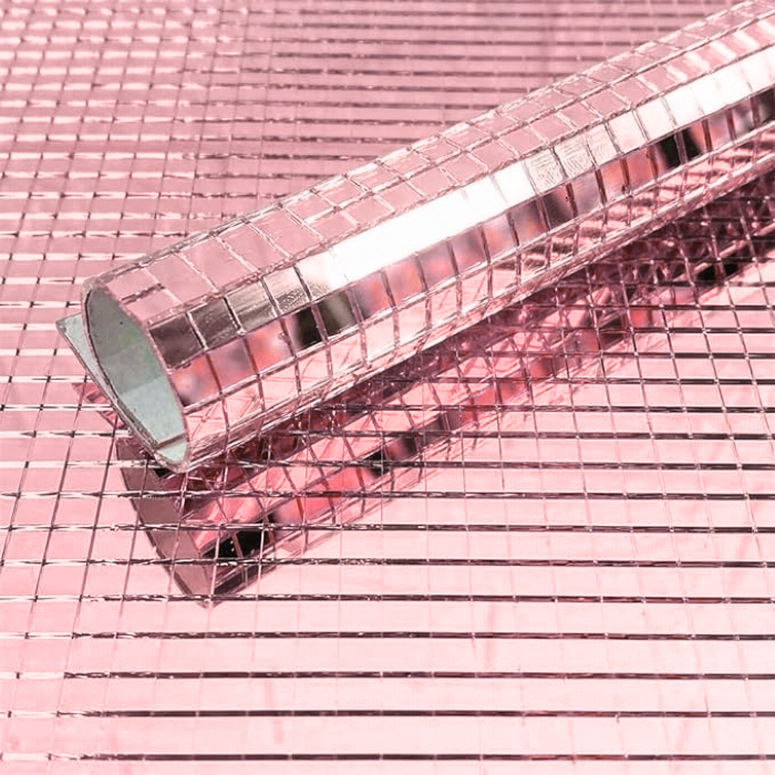 Лента самоклеящаяся зеркальная мозаика акрил 30х30см 5х5мм, розовый
