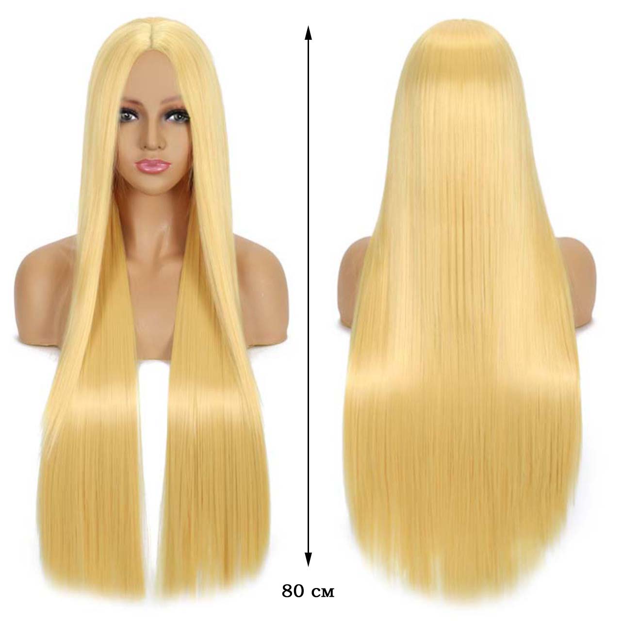 Парик прямой длинный без челки, изготовлен из современного искусственного материала.