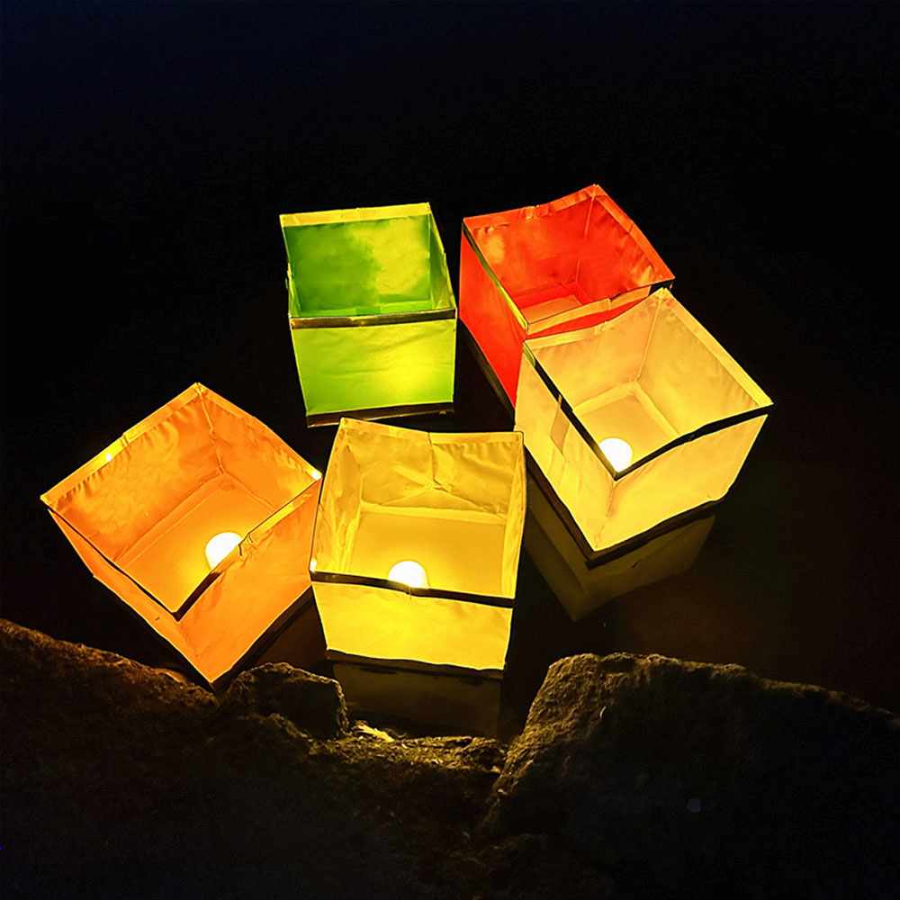 Плавающий фонарик "Куб" 11х11 см золото+зеленый