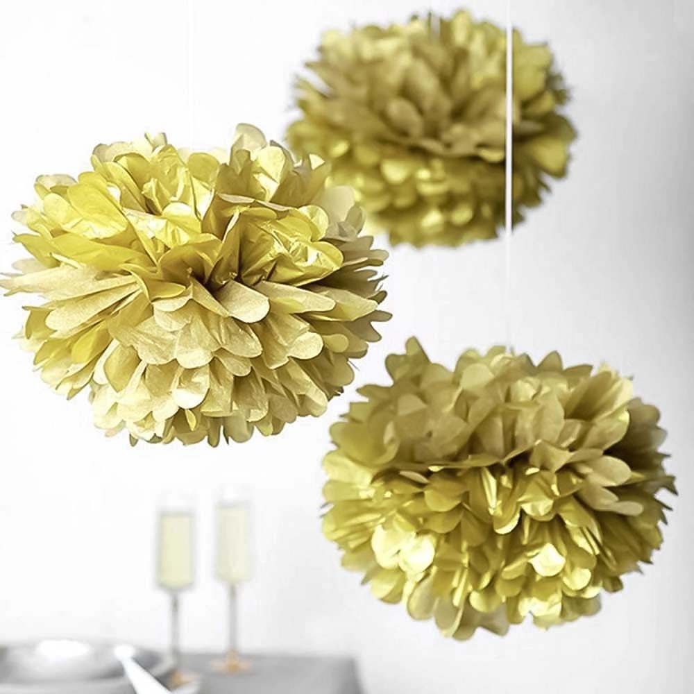 Золотой бумажный помпон диаметром 35 см — стильное и лёгкое украшение для праздников, фотозон, витрин и интерьера. Отлично подойдёт для дней рождений, свадеб, вечеринок и тематических мероприятий.