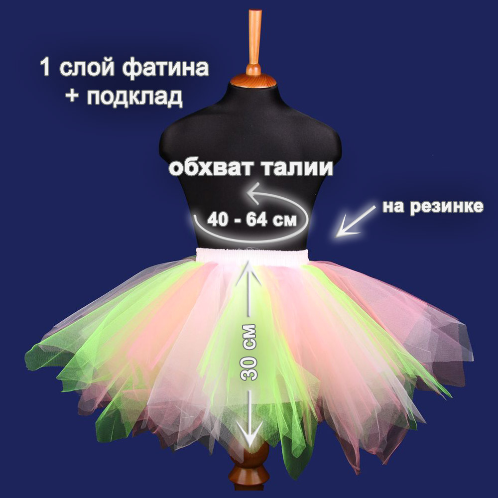Юбка-пачка детская 30 см №19 св.розовый+салатовый+розовый
